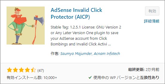 WordPressダッシュボード > プラグイン > 新規追加 > AdSense Invalid Click Protectorを検索
