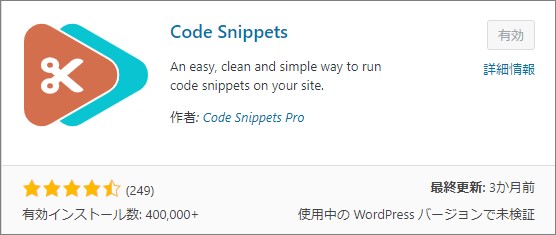 WordPressダッシュボード > プラグイン > 新規追加 > Code Snippetsを検索