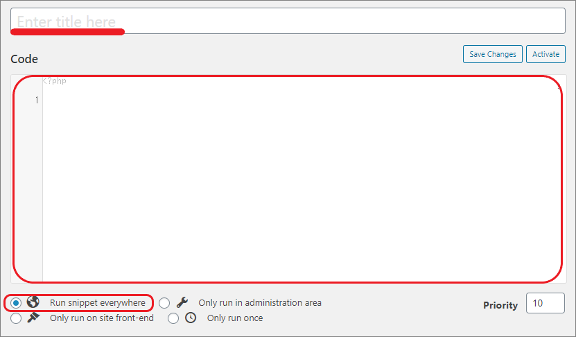 Code Snippetsにコードを追加と広告用ショートコードの作成